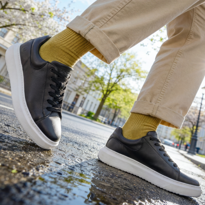 Daisy Black stavia na elegantnom kontraste čiernej kože a masívnej bielej podrážky. Je to ideálna voľba, ak hľadáte praktické topánky, ktoré aj v jarnom šatníku pôsobia ľahko a dodajú vášmu outfitu šmrnc. Zvršok z kvalitnej kože je odolný a veľmi ľahko sa udržiava, takže budú vyzerať skvele aj po celodennom behaní po meste. Vyššia podrážka vám navyše opticky pridá pár centimetrov a zaistí stabilitu na každom povrchu. Daisy Black sú dôkazom, že aj jednoduchá teniska môže vyzerať vkusne k úzkym džínsom aj jarnému kabátu.