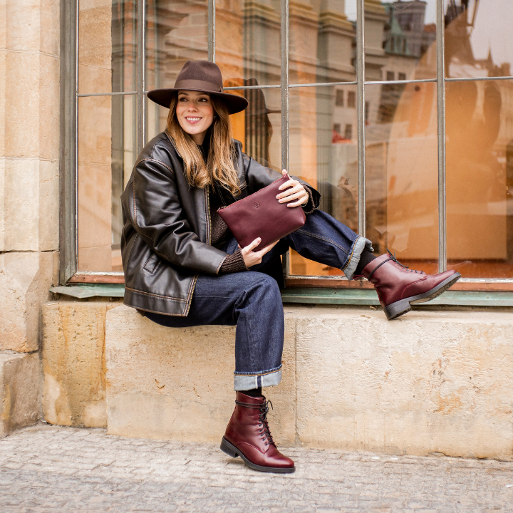 Spojenie trendového odtieňa a českého remesla v každom kroku. Grace Bordeaux prináša výrazný, módny odtieň, po ktorom naše zákazníčky dlho túžili a ktorý už niekoľko sezón ovláda mestské ulice aj módne prehliadky. Nízky podpätok a pevný strih poskytujú pohodlie a istotu, zatiaľ čo subtílne zaväzovanie dopĺňa čistú, minimalistickú siluetu. Pravá koža a ručné spracovanie v Českej republike dávajú Grace dlhú životnosť a nadčasovú hodnotu.